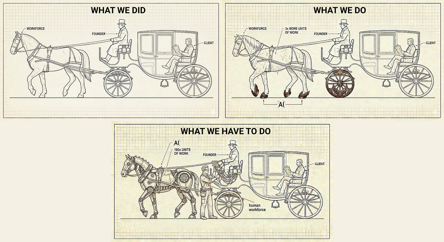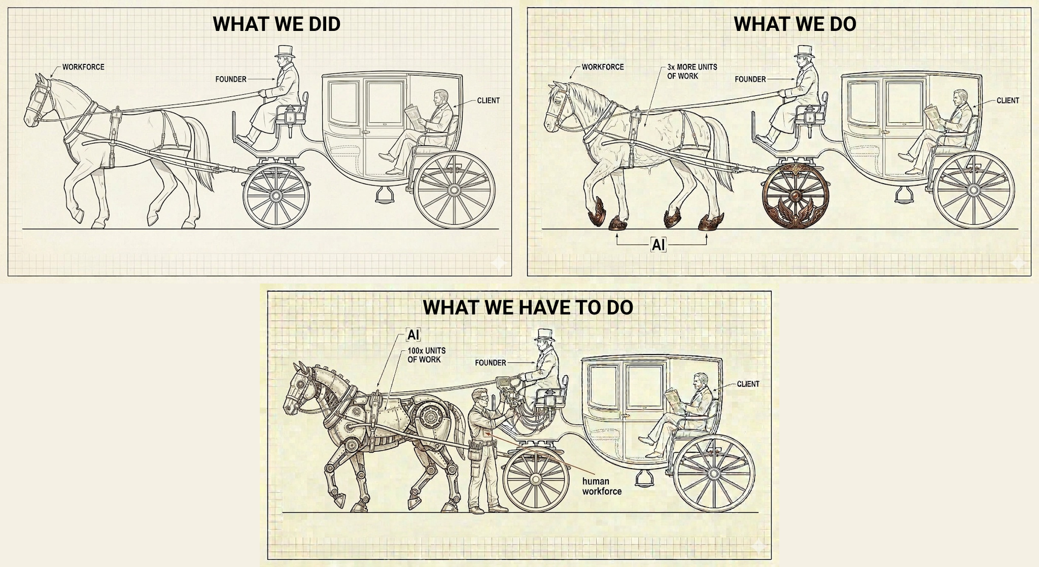 Take a founder as an example. The wrong transformation: use AI to ship everything faster — landing pages, pitch decks, product MVPs, legal docs — all generated in a weekend. Feels like a superpower. What actually happens — you ship fast with zero guardrails. AI hallucinates a privacy policy that doesn’t cover your actual data flows. Your MVP stores user credentials in plain text because nobody reviewed the architecture. You move at 10x speed straight into a wall. The right transformation: the founder doesn’t just use AI — they surround themselves with the right people who know where AI cuts corners. A security-minded engineer who reviews what AI generates. An advisor who flags regulatory blind spots before they become lawsuits. The founder’s job is not to do everything with AI. It is to build the team and the structure that makes AI safe to use at speed. The harness matters more than the horsepower.